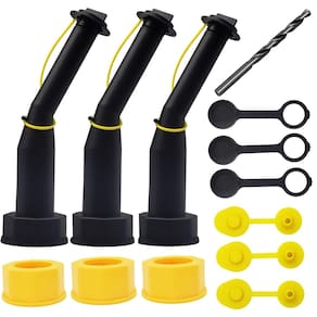? Substituição de bico de gás para uso em recipientes de água de gás de plástico portáteis fabricados antes de 1 de janeiro de 2009 ?Feito de plástico superior, flexível e durável, bico fácil de despejar equipado com uma tela de filtro/filtro de fogo. ?O kit inclui uma ventilação para que o combustível flua facilmente e uniformemente. ? Vem com tampas de base amarelas e pretas, a tampa de base preta é um fio fino adequado para Blitz, Gott. ?A tampa de base amarela é uma linha grossa adequada para o cetro do meio-oeste. ? Tampas de ventilação amarelas com aba de retenção para evitar que salte da lata. Fácil de instalar, é necessário furar. Comece com uma lata vazia, faça um furo de 1,27 cm na parte de trás da sua lata de plástico acima da linha de enchimento, insira a tampa de ventilação e coloque-a suavemente com um martelo de borracha. Sugerimos que você faça um furo menor para começar e trabalhe até a broca de 1,27 cm. Certifique-se de fazer um furo reto e limpo e não se gabar de lado a lado com a broca para que você não faça um furo maior do que o necessário. Especificações: Material: plástico Cor: preto Tamanho (bico comprido): aproximadamente 17,78 cm de comprimento com a junta tem aproximadamente 3,8 cm de largura As dimensões internas da tampa amarela são 2 cm. A dimensão do boné preto com listras traseiras é de 2 cm. O comprimento das cordas conectadas é de 2 cm. A dimensão interna do fio fino preto é de 4,8 cm A dimensão interna do fio amarelo é de 4,5 cm NOTA: Verifique o diâmetro da rosca externa do seu recipiente antes de fazer esta compra Montagem: Adequado para plástico pode como 1 galão, 2,5 galões, 5 galões etc. Peso do pacote: aprox. 200 g Bocal de lata de gás utilizado em: água gasolina gasolina diesel querosene gramado combustível misto - Alta qualidade: o kit de bocal de lata de gás é feito de plástico atualizado que não é fácil de rachar, juntas de borracha mais espessas e alargadas podem se ajustar melhor à tampa da garrafa, evita vazamento de líquido ao reabastecer - Economia de combustível: com este bocal de substituição para despejar o líquido, você nunca mais derramará gás sobre você e seu equipamento novamente - Economia de trabalho: o bico de lata de gás com um design de ângulo exclusivo facilita o despejo sem a necessidade de outros dispositivos e tubo de dobra - Economia de tempo: empurre a tampa de ventilação para um esvaziamento mais rápido e seguro, o filtro/prendedor de chamas evita qualquer dano sério para um despejo mais suave e limpo - Alta compatibilidade: o kit de substituição de bico de lata de combustível inclui 2 tipos de tampa de rosca (fina e grossa), adequado para a maioria das latas de gás de jarro de água antes de 2009 - Kit completo: o kit de ventilação de substituição de bico vem com todas as peças que você precisa, incluindo bico e tampa, tampa de ventilação, tampa de base, tela de filtro, juntas e broca. Você não precisará comprar outra peça separadamente