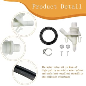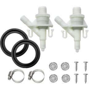 - O kit de válvula sanitária RV inclui 2 válvulas de água 385311641, 2 x 385311658 Flush Ball Seal, 2 x fixadores de mangueira, 4 x parafusos e 4 x filtros de malha inoxidável