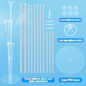 Kit de suporte de balão com 4 conjuntos de suporte de arco de balão com base e bastões de balão para mesa, formatura, casamento, aniversário, chá de bebê, decoração de festa - Incluído na embalagem: o kit de suporte de balão Voircoloria inclui 4 conjuntos de suporte de balão de mesa. NOTA: os balões não estão incluídos. Cada kit de suporte de balão inclui 7 copos, 1 base, 4 juntas de conexão, 3 postes de 20 cm, 8 postes de 35 cm - Material premium: Feito de material de PVC de alta qualidade, estes suportes de balão são resistentes, estáveis e reutilizáveis, garantindo que você tenha uma decoração de festa de longa duração - Fácil de montar: montar o suporte de balão é muito fácil e leva apenas dois minutos para ser concluído. Também é fácil de desmontar e reutilizar para eventos futuros - Amplamente aplicações: ideal para várias ocasiões, como aniversários, chás de bebê, graduações e feriados, o kit de suporte de arco de balão é a decoração perfeita para qualquer celebração realizada em ambientes internos ou externos - Dicas: para garantir que seu suporte de balão tenha a melhor aparência, recomendamos o uso de balões de alta qualidade da Voircoloria com tamanho de 25 a 30 cm