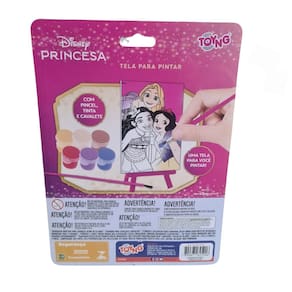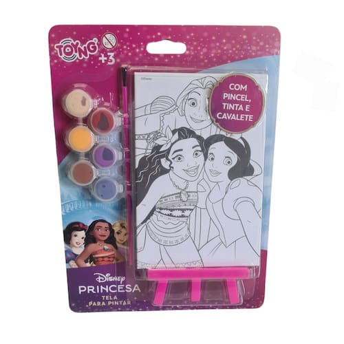 A Tela Para Pintar Com Tinta, Pincel e Cavelete é um conjunto incrível para estimular a criatividade das crianças. Inspirado no mundo encantado das princesas, esse kit vem com uma tela com o desenho das princesas em preto e branco, um pincel, seis cores de tintas e um cavalete para colocar a tela, que garantem diversão e aprendizado ao mesmo tempo.