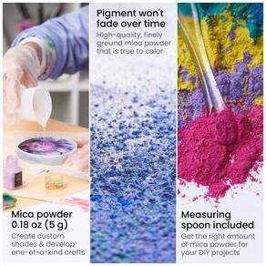 Grande variedade de cores exclusivas você obterá 60 cores exclusivas com 3 tons de camaleão e 57 tons de pó de mica metálicos para adicionar um efeito atraente ao seu artesanato. Cada cor vem em uma garrafa 0,18 oz , 5 g. Altamente pigmentado e fácil de misturar a mica mineral tem uma textura suave para facilitar a mistura, tornando a perfeita para velas caseiras e outros artesanatos DIY. Colher de medição incluída obtenha a quantidade certa de pó de pigmento de mica sempre que iniciar um projeto com a prática colher de medição de 0,2 g incluída. Você só precisa de uma pequena quantidade para obter uma cor ousada e brilhante. Projetado e criado por artistas aqui na Arteza, somos apaixonados por criar produtos que inspiram. Para nós, a arte é uma expressão da experiência humana. É por isso que trabalhamos para tornar nossos materiais de arte acessíveis a todas as pessoas Marca: Não Informado