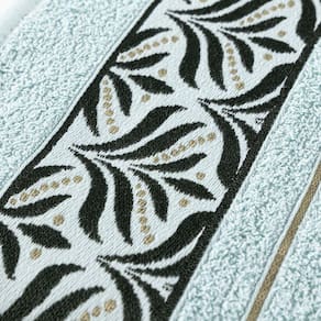 O desenho delicado que imita folhagem confere um charme especial a cada peça do nosso kit toalha sintra. Cada detalhe foi cuidadosamente desenhado para trazer uma sensação de frescor e conexão com a natureza para o seu espaço de banho.