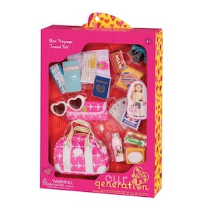Acessórios de viagem para bonecas de 46cm Para aventuras divertidas desde o embarque até o passeio pela cidade com esse lindo conjunto de viagem Our Generation Suas bonecas favoritas se transformarão em sofisticadas viajantes com direito a lanchinhos, baralho de cartas, passaporte, carteira, cartões de embarque, câmera, óculos de sol, produtos de higiene pessoal e uma mala. Cada peça é perfeitamente dimensionada para as bonecas Our Generation. Acessórios faz de conta. Boneca vendida separadamente. Our Generation não se trata apenas de uma boneca, um lindo conjunto de roupas ou mesmo um kit de acessórios fantásticos. É sobre incentivar crianças de todos os estilos e gostos a criar suas próprias histórias, desenvolvendo um universo ilimitado de brincadeiras com bonecas e acessórios. Sua embalagem é feita de material reciclado, especialmente desenvolvida para uma geração mais ecológica que não aceitaria nada menos. Essa é a nossa história, e essa é a nossa turma Homologação Inmetro: IP-BRI-1866/2021-01