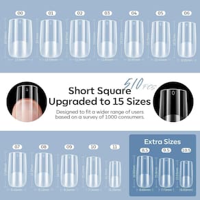 - Ajuste aprimorado com 15 tamanhos e design quadrado curto: atualizado de 12 a 15 tamanhos para um ajuste mais preciso e personalizado, perfeito para camas de unhas curtas com uma forma quadrada chique. A textura semi-fosca aumenta a adesão, enquanto o material ABS leve e respirável garante conforto e uma sensação natural