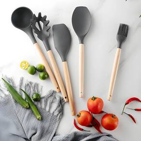 Eleve sua experiência culinária com o Kit de Utensílios de Cozinha 11 em 1, projetado para facilitar o preparo de suas refeições favoritas com praticidade e estilo. Este conjunto completo de utensílios combina a durabilidade da madeira com a versatilidade do silicone, oferecendo um conjunto confiável e funcional para suas necessidades na cozinha.