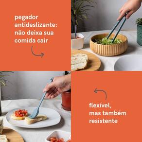 01 PEGADOR DE SALADA DE SILICONE PEQUENO AZUL – OIKOS Dimensões: 21cm (A) x 3,5 cm (L)