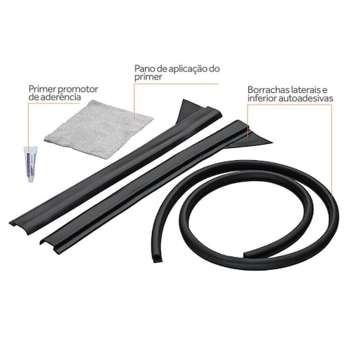 • 01 kit de vedação completo contendo 2 borrachas laterais, 01 borracha inferior, primer e flanela para aplicação.