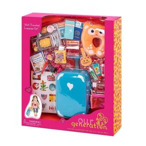 Todos os itens mais essenciais de viagem para bonecas de 46cm que amam passear Guarde todas as suas coisas importantes e vamos pegar a estrada para uma nova aventura De avião, de trem ou de carro, estamos todas prontas para explorar Onde iremos parar Que pontos turísticos veremos Não podemos dizer com certeza, mas parte da aventura é sobre descoberta. O resto é para chegar lá, e este conjunto de viagem para bonecas tem tudo o que elas precisam Faça as malas e prepare-se Este conjunto vem com uma mini mala de mão fofa perfeita para bonecas de 46cm, com rodas que giram e uma alça extensível. Agora embarque para o Destino: Incrível Não se esqueça do cartão de embarque e do bilhete junto com o passaporte do tamanho perfeito para a boneca. Não sabe onde no mundo você está Confira sua localização no mapa do mundo Bonecas famintas podem desfrutar de uma refeição servida em uma bandeja de viagem em miniatura, com compartimentos úteis para evitar que a comida derrame. Cada novo lugar tem seus próprios produtos especiais... mas às vezes gostamos de ter algumas de nossas coisas favoritas. Mantenha o xampu e pasta de dente seguros em uma bolsa bonita e transparente com zíper. Em lugares novos o sol pode ser muito quente Não se esqueça do protetor solar da sua boneca E lembre-se de não colocar sua boneca sob luz solar direta por muito tempo Viajar não é apenas estar preparado - é também explorar e se divertir Você pode realmente escrever nas páginas do diário de viagem para acompanhar onde você e sua boneca estiveram e o que você gosta em cada lugar. Use os adesivos para decorar a mala da sua boneca e mostrar alguns dos lugares legais que você já esteve Acessórios faz de conta. Bonecas vendidas separadamente. Our Generation não se trata apenas de uma boneca, um lindo conjunto de roupas ou mesmo um kit de acessórios fantásticos. É sobre incentivar crianças de todos os estilos e gostos a criar suas próprias histórias, desenvolvendo um universo ilimitado de brincadeiras com bonecas e acessórios. Sua embalagem é feita de material reciclado, especialmente desenvolvida para uma geração mais ecológica que não aceitaria nada menos. Essa é a nossa história, e essa é a nossa turma