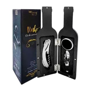 *Eleve a experiência de degustar vinhos com este elegante **Kit de Vinho de 5 Peças**. Guardado em um estiloso estojo em forma de garrafa de 23 cm, esse conjunto é perfeito para qualquer apreciador da bebida. Dentro, você encontrará acessórios essenciais, como um **salva-gotas** de 38 cm, garantindo uma degustação limpa e sem desperdícios, e um **abridor de 11 cm**, prático e funcional. Para um toque final, o **corta-gotas de 7,5 cm** e sua tampa de 5,5 cm trazem um refinamento especial à sua experiência.