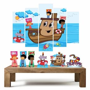 Kit Decoração Festa Aniversário Três Palavrinhas Barco Mar Desenho: Palavrinhas Transforme sua Festa em um Mundo de Aventuras com Nossos Banners Personalizados