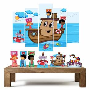 Kit Decoração Festa Aniversário Três Palavrinhas Barco Mar Desenho: Palavrinhas Transforme sua Festa em um Mundo de Aventuras com Nossos Banners Personalizados