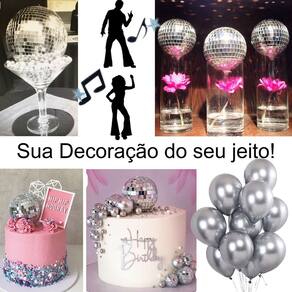 Kit Decoração Festa Disco Anos 80: Cortina Metalizada + Painel + Mini Globos + Balões + Enfeites = 47 Produtos Temáticos. Surpreenda seus convidados com uma decoração temática Discoteca Anos 80. Perfeito para decorar o ambiente, a mesa e até o bolo, solte sua criatividade e arrase na decoração. Kit contendo: 1 Painel decorativo Prateado Brilhante. Tamanho: 197 cm de comprimento x 99 cm de altura. 1 Toalha de mesa Prateada retangular. Tamanho: 137 x 183 cm. 1 Globo de 10 cm. 12 Mini Globos 3 cm. 10 Balões Metalizados Prata de 12 polegadas. 6 Mini Silhueta dançarinos com glitter nas cores preto e branco, podendo variar em colorido. Confeccionado em EVA. Tamanho aproximado de 12 cm. 6 Mini Notas Musicais com glitter, cores podendo variar entre preto, branco ou colorido. Confeccionado em EVA. Tamanho aproximado de 6 cm. 10 Mini Estrelas prateadas com glitter, podendo variar em preto ou colorido. Confeccionado em EVA. Tamanho aproximado de 3 cm. Total de 47 produtos temáticos. Atenção: Produto de alto giro, recebemos novas remessas semanalmente e algum detalhe pode variar conforme o lote recebido, porém o produto é o mesmo e mantém as mesmas características e qualidade. Contém: 1 Painel Decorativo + 1 Toalha de Mesa + 1 Globo 10 cm + 12 Mini Globos 3 cm + 10 Balões Prata + 6 Mini Silhuetas Dançarinos + 6 Mini Notas Musicais + 10 Mini Estrelas = Total de 47 produtos temáticos. Fotos ilustrativas e reais do produto. Marca: Party Time