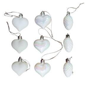 Informações importantes: - Modelo: Enfeite de Natal - Material: Polipropileno - 9 peças inclusas - Peso: 0,205 g - Circunferência: 16 cm - Cor: Branco - Ganchos ornamentais incluídos