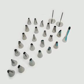 Atenção: imagens meramente ilustrativas. Contém: Cake decorator com 35 peças. Fluente. C4447. Chegou uma enorme novidade kit cake decorator chegou para facilitar seu dia agora além de um delicioso sabor, suas receitas terão uma aparência fantástica Características: Kit cake decorator: Com 35 trinta e cinco peças, possui diversos bicos para todo tipo de uso, com 02 dois sacos para confeitar, sendo eles: 01 um saco de silicone, saco reutilizável, durável, flexível e prático, silicone da melhor qualidade, interior liso para espremer facilmente e não agarrar produto algum e exterior áspero, possuindo 01 uma matriz para o encaixe dos bicos. 01 um saco duplo, podendo decorar com dois sabores diferentes de uma vez, possuindo matriz duplo para o perfeito uso. Com 25 vinte e cinco bicos diferentes contendo uns dos mais vendidos, contém bico recheador. Acompanha 01 uma escovinha de limpeza e 02 duas bases para fazer flor e rosas. Contém 02 dois prendedores flexíveis que auxiliam o rápido fechamento dos sacos de confeitar. Medidas aproximadas kit cake decorator centímetro : Saco de silicone: Larg: 21cm. Comp: 35cm. Saco duplo: Cada lado: Larg: 13 cm. Comp: 29 cm. Total: Larg: 26 cm. Comp: 29 cm.