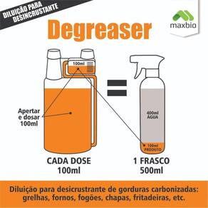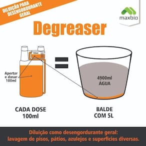 Kit degreaser 1l com refil desengordurante universal superconcentrado maxbio Degreaser - desengordurante universal superconcentrado sua fórmula saponifica os resíduos gordurosos e graxosos, propiciando uma limpeza pesada e instantânea sem deixar resíduos. Assim como os outros produtos da nossa linha eco, também é um produto versátil podendo ser utilizados nas mais diversas superfícies. Sua concentração de 1 litro permite que você faça 10 produtos de 500 ml para pronto uso