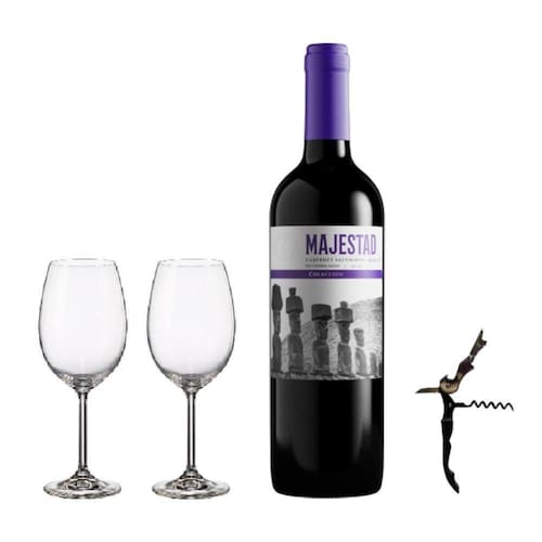 Este Kit é ideal para presentear ou compor a adega. Conta com um saca-rolha de dois estágios da vinícola La Ronciere, uma taça de cristal de 210ml da Bohemia, e o vinho Majestad Blend tinto Marca: MAJESTAD