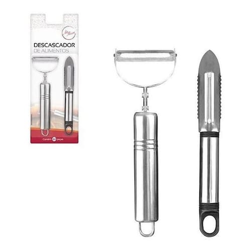 Kit Descascador Com 2 Peças Em Plastico Metal ZeinInformações do produtoDesascador de alimentos com 2 peças em aço inoxConjunto com 2 ítens para descascar alimentos.São 2 tipos diferentes de descascadores de alimentos, que vão tornar o preparo das refeições ainda mais Rápidos e descomplicados, facilitando o preparo.Em aço inox, os dois descascadores de alimentos são peças leves, resistentes e duráveis, essencial para se ter em casa.33x33x33cm