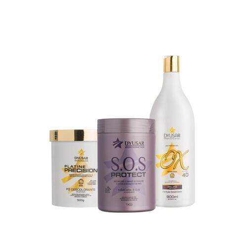 O.274893/2018-14 o pó descolorante platine precision white abre até 10 tons e proporciona um resultado uniforme, proteção, hidratação, sedosidade e brilho. modo de usar: acrescente a medida desejada do pó descolorante em um recipiente não metálico. Adicione o oxidante aos poucos e misture até formar um creme homogêneo, sempre na proporção 1: 2 uma medida de pó para duas medidas de ox . Siga rigorosamente as instruções de uso e faças testes de toque e mechas antes de aplicar. Após o término do tempo de ação, enxágue bem com água morna e lave os cabelos como de costume. Hidratar para melhor resultado. teste de mecha: separe uma mecha fina do alto da cabeça, misture um pouco do produto e aplique na mecha, deixando o tempo de ação indicado e então a lave. Respeite a proporção utilizada na prova do toque. Se o cabelo ficar quebradiço ou houver aquecimento, é sinal de que o seu cabelo não se encontra em condições para o uso do produto. Atenção não utilize água oxigenada acima de 13 volumes para clareamento de pelos do corpo sem proteção prévia da pele. As oxidantes estabilizadas ou água oxigenada da dyusar professional possuem fórmula estabilizada, cremosa e perfumada, além de proporcionar uniformidade e brilho. modo de uso: misturar a emulsão oxidante com a tintura ou descolorante, conforme as proporções de diluição aconselhadas para cada tipo de produto.Cuidados: contém substâncias passíveis de causar alergia na pele. Antes de usar, faça a prova de toque. Não usar nos cílios e sobrancelhas pois pode causar irritação nos olhos ou cegueira. Não aplicar se o couro cabeludo estiver irritado ou lesionado. Em caso de contato, enxaguar com água abundantemente. Manter fora do alcance das crianças. Evitar exposição ao sol. Contém peróxido de hidrogênio. Usar luvas adequadas. Usar luvas apropriadas. Respeitar o tempo de pausa. Não utilizar ferramentas metálicas. Tempo de uso: até 50 minutos. Este produto deve ser utilizado apenas por um cabeleireiro. prova de toque: aplicar pequena quantidade no antebraço ou atrás da orelha. Deixar sobre a pele uma hora. Em seguida enxaguar o local. Aguardar 24 horas. Caso surja sinais de irritabilidade, não utilizar o produto. A máscara s.O.S protect antioxidante da dyusar professional hair é uma máscara capilar que controla o ph dos fios, promove maciez e melhora a elasticidade dos cabelos. Reconstrói e combate os radicais livres, cessando a oxidação dos fios. Age de forma antioxidante, reconstruindo e combatendo os radicais. Modo de usar: após lavar os cabelos aplique o produto sobre toda a extensão dos fios. Massageie e deixe agir por aproximadamente 7 minutos. Enxágue bem. Marca: Não Informado Ean: 7792559193878