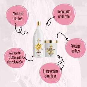O.274893/2018-14 o pó descolorante platine precision white abre até 10 tons e proporciona um resultado uniforme, proteção, hidratação, sedosidade e brilho. modo de usar: acrescente a medida desejada do pó descolorante em um recipiente não metálico. Adicione o oxidante aos poucos e misture até formar um creme homogêneo, sempre na proporção 1: 2 uma medida de pó para duas medidas de ox . Siga rigorosamente as instruções de uso e faças testes de toque e mechas antes de aplicar. Após o término do tempo de ação, enxágue bem com água morna e lave os cabelos como de costume. Hidratar para melhor resultado. teste de mecha: separe uma mecha fina do alto da cabeça, misture um pouco do produto e aplique na mecha, deixando o tempo de ação indicado e então a lave. Respeite a proporção utilizada na prova do toque. Se o cabelo ficar quebradiço ou houver aquecimento, é sinal de que o seu cabelo não se encontra em condições para o uso do produto. Atenção não utilize água oxigenada acima de 13 volumes para clareamento de pelos do corpo sem proteção prévia da pele. As oxidantes estabilizadas ou água oxigenada da dyusar professional possuem fórmula estabilizada, cremosa e perfumada, além de proporcionar uniformidade e brilho. modo de uso: misturar a emulsão oxidante com a tintura ou descolorante, conforme as proporções de diluição aconselhadas para cada tipo de produto.Cuidados: contém substâncias passíveis de causar alergia na pele. Antes de usar, faça a prova de toque. Não usar nos cílios e sobrancelhas pois pode causar irritação nos olhos ou cegueira. Não aplicar se o couro cabeludo estiver irritado ou lesionado. Em caso de contato, enxaguar com água abundantemente. Manter fora do alcance das crianças. Evitar exposição ao sol. Contém peróxido de hidrogênio. Usar luvas adequadas. Usar luvas apropriadas. Respeitar o tempo de pausa. Não utilizar ferramentas metálicas. Tempo de uso: até 50 minutos. Este produto deve ser utilizado apenas por um profissional cabeleireiro. prova de toque: aplicar pequena quantidade no antebraço ou atrás da orelha. Deixar sobre a pele uma hora. Em seguida enxaguar o local. Aguardar 24 horas. Caso surja sinais de irritabilidade, não utilizar o produto. A máscara s.O.S protect antioxidante da dyusar professional hair é uma máscara capilar que controla o ph dos fios, promove maciez e melhora a elasticidade dos cabelos. Reconstrói e combate os radicais livres, cessando a oxidação dos fios. Age de forma antioxidante, reconstruindo e combatendo os radicais. Modo de usar: após lavar os cabelos aplique o produto sobre toda a extensão dos fios. Massageie e deixe agir por aproximadamente 7 minutos. Enxágue bem. Marca: Dyusar Cosmeticos