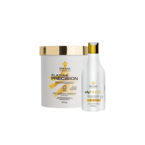 168745/2019-34 O pó descolorante platine precision white abre até 10 tons e proporciona um resultado uniforme, proteção, hidratação, sedosidade e brilho. Modo de usar: acrescente a medida desejada do pó descolorante em um recipiente não metálico. Adicione o oxidante aos poucos e misture até formar um creme homogêneo, sempre na proporção 1: 2 uma medida de pó para duas medidas de ox . Siga rigorosamente as instruções de uso e faças testes de toque e mechas antes de aplicar. Após o término do tempo de ação, enxágue bem com água morna e lave os cabelos como de costume. Hidratar para melhor resultado. Teste de mecha: separe uma mecha fina do alto da cabeça, misture um pouco do produto e aplique na mecha, deixando o tempo de ação indicado e então a lave. Respeite a proporção utilizada na prova do toque. Se o cabelo ficar quebradiço ou houver aquecimento, é sinal de que o seu cabelo não se encontra em condições para o uso do produto. Atenção não utilize água oxigenada acima de 13 volumes para clareamento de pelos do corpo sem proteção prévia da pele. O dy plex protetor de descoloração dyusar cosméticos 300 ml, é um restaurador capilar que proporciona proteção nos processos de coloração e descoloração.168745/2019-34 Modo de usar: adicione de 10 a 12 ml do plex a um recipiente de coloração ou descoloração e siga corretamente o passo a passo e as recomendações correspondentes ao produto utilizado. Marca: Não Informado