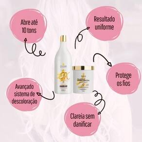 O pó descolorante platine precision white abre até 10 tons e proporciona um resultado uniforme, proteção, hidratação, sedosidade e brilho. Modo de usar: acrescente a medida desejada do pó descolorante em um recipiente não metálico. Adicione o oxidante aos poucos e misture até formar um creme homogêneo, sempre na proporção 1: 2 uma medida de pó para duas medidas de ox . Siga rigorosamente as instruções de uso e faças testes de toque e mechas antes de aplicar. Após o término do tempo de ação, enxágue bem com água morna e lave os cabelos como de costume. Hidratar para melhor resultado. Teste de mecha: separe uma mecha fina do alto da cabeça, misture um pouco do produto e aplique na mecha, deixando o tempo de ação indicado e então a lave. Respeite a proporção utilizada na prova do toque. Se o cabelo ficar quebradiço ou houver aquecimento, é sinal de que o seu cabelo não se encontra em condições para o uso do produto. Atenção não utilize água oxigenada acima de 13 volumes para clareamento de pelos do corpo sem proteção prévia da pele.315844/2018-31 - a oxidante estabilizada de 20 volumes da dyusar cosméticos, possui fórmula estabilizada, cremosa e perfumada e proporciona uniformidade e brilho ao resultado. Observação: usar luvas apropriadas. Respeitar o tempo de pausa. Respeitar os oxidantes recomendados. Não utilizar ferramentas metálicas. Não deixar escorrer o produto no couro cabeludo. Tempo de uso: até 50 minutos. Este produto deve ser utilizado apenas por um profissional cabeleireiro. Modo de uso: misturar a emulsão oxidante com a tintura ou descolorante, conforme as proporções de diluição aconselhadas para cada tipo de produto.775961/2020-74 Marca: Não Informado