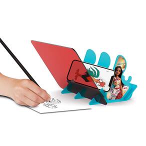 Base completa para ensinar a desenhar com cartelas com 4 Personagens diferente da Moana, para fazer desenhos Incríveis Desenvolve o raciocinio, coordenação motora e estimula os sentidos e a criatividade da criança Vem com lápis e bloco de papel No QRcode da embalagem vem desenhos de outros personagens e você pode apoiar na base seu celular, o que possibilita desenhar o que quiser!