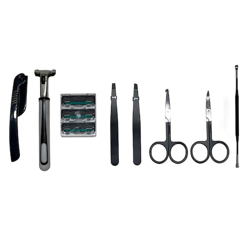 Kit Design de Sobrancelha e cuidado pessoal com 10 peças, portátil e fácil de usar, pode ser levado em qualquer bolso ou bolsa para fazer retoques e correções em viagens , trabalho, festas.