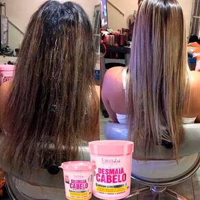 O Kit Desmaia Cabelo Completo Forever Liss traz todos os produtos da linha para um tratamento completo dos seus cabelos, um complexo de nutrientes que irá melhorar completamente o aspecto das suas madeixas. Este kit é composto por 5 produtos, iniciando a aplicação pelo Shampoo Desmaia Cabelo. Ele promove uma limpeza suave dos cabelos, auxiliando no tratamento dos fios porosos. A Máscara Desmaia Cabelo Forever Liss é campeã na preferência das mulheres, pois devido a seus compostos como Queratina Brasileira, D’Pantenol, Colágeno e Sinergia de Aminoácidos, tem alto poder hidratante e reparador. Ao reconstruir os fios, ela reduz o volume, proporciona maciez e tem efeito anti-frizz. O Condicionador Desmaia Cabelo tem a função de prolongar a hidratação, mantendo os cabelos bonitos e bem cuidados por mais tempo. Para uma ação desembaraçante eficaz, proteção térmica e fios mais leves, o Leave-in Desmaia Cabelo é um poderoso aliado. Para finalizar o tratamento, o Sérum Desmaia Cabelo, rico em silicones multifuncionais, ceramidas e polímeros, forma uma camada protetora que protege os fios do calor do secador e da chapinha, realçando o brilho e a beleza dos seus cabelos.