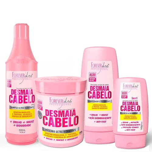 O Kit Desmaia Cabelo Completo Forever Liss traz todos os produtos da linha para um tratamento completo