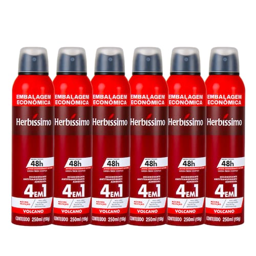 Kit Desodorante Aerosol Antitranspirante Herbíssimo Volcano 250Ml - 6 unidades