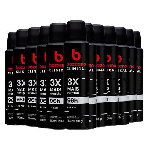 O Desodorante Aerosol Bozzano Clinical Clean garante 3 vezes mais proteção e até até 96 horas de duração, graças a sua tecnologia total controle. Conta com um fragrância moderna e refrescante que oferece proteção com ação antitranspirante e desodorante para homens confiantes que não abrem mão da segurança e conforto no dia a dia. Testado dermatologicamente, o antitranspirante não possui álcool em sua fórmula.