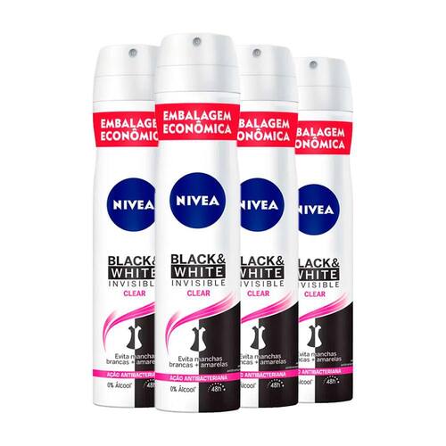 O Desodorante Nívea Invisible Black & White Feminino foi criado para proporcionar uma proteção por 48horas, e uma agradável sensação de conforto por todo o dia. Enriquecido com agentes que deixam a pele hidratada e protegida, alem de evitar manchas amarelas nas roupas brancas e manchas brancas nas roupas pretas cuidado que toda mulher realmente merece. O Desodorante Nívea Invisible Black & White Feminino possui uma fórmula com dobro de agentes antitranspirantes e minerais que criam uma camada protetora evitando o suor e a proliferação de bactérias causadoras de mau odor.