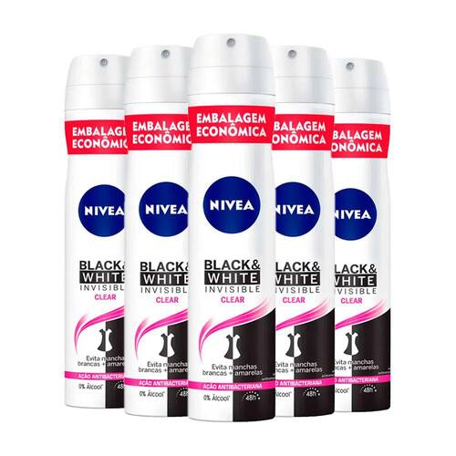 Kit Desodorante Aerosol Nívea Black & White Feminino 200ml - 5 unidades