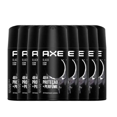 O Kit Desodorante Antitranspirante Aerosol Axe Black 150ml - 8 Unidades foi desenvolvido para novos homens com um sutil e balanceado perfume, que traz uma energia e elegância ao mesmo tempo, tudo para homens que gostam de se sentir confiantes no dia-a-dia. Ean: 000000000017
