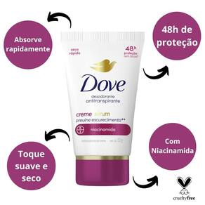 - 03 Desodorantes Creme Sérum Dove Antitranspirante Previne Escurecimento.