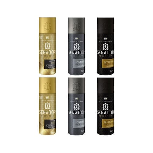 Kit desodorante spray 2 senador gold+ 2 senador platinum+ 2 senador seduction
