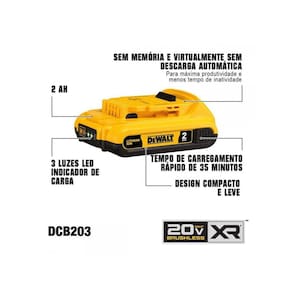 Alimenta toda linha de Ferramentas à bateria íons de lítio da Dewalt de 20 Volts MAX, possibilitando que o usuário carregue várias ferramentas com a mesma carga de bateria.