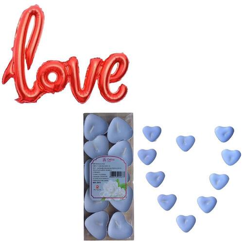 Kit Dia Dos Namorados 10 Vela Coração Flutuante E Balão Love Kit Dia dos Namorados contendo 10 Velas Flutuantes perfumadas de parafina em forma de coração na cor branca e um Balão Love de 108 x 64 cm.