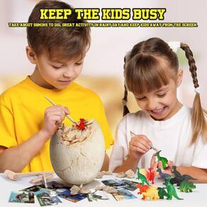 - Atividade divertida e educacional: essa escavação de ovos de dinossauro levará cerca de 40 minutos para ser completamente escavada, que maneira prática e divertida de as crianças aprenderem sobre paleontologia! Você não sabe exatamente onde os dinossauros estão no quarteirão, desenterrou um ovo de dinossauro e, de repente, se deparar com um dinossauro fez seus filhos sentirem que realmente fizeram uma grande descoberta! E é uma maneira muito boa de desenvolver e melhorar o paciente, a atenção, a habilidade prática e assim por diante.