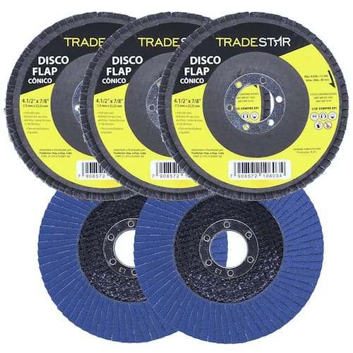 Disco de Lixa Flap Tradestar 4.1/2 Grão 100 para Lixadeira Apresentando o Disco de Lixa Flap da marca Tradestar, uma ferramenta essencial para todos os profissionais e entusiastas do faça-você-mesmo que buscam um acabamento suave e uniforme em seus projetos. Características principais: Grão 100: Ideal para lixamento médio, preparação de superfícies e remoção de imperfeições. Dimensionamento Preciso: Com um diâmetro de 4.1/2 polegadas, é perfeitamente compatível com a maioria das lixadeiras do mercado. Durabilidade Superior: Fabricado com materiais de alta qualidade, garante uma longa vida útil e desempenho consistente ao longo do tempo. Acabamento Uniforme: Graças ao seu design flap, proporciona um lixamento suave, minimizando arranhões e marcas na superfície. Fácil Instalação: Pode ser facilmente montado em lixadeiras angulares sem a necessidade de ferramentas especiais. Recomendações de Uso: Certifique-se de que a lixadeira esteja desligada ao montar ou remover o disco. Use equipamento de proteção individual, incluindo óculos de segurança, máscara e luvas ao usar o disco de lixa. Mantenha fora do alcance de crianças e animais de estimação. Com o Disco de Lixa Flap Tradestar, você pode contar com uma ferramenta de alto desempenho que atende a todas as suas necessidades de lixamento. Seja para ou projetos domésticos, esta é a escolha certa para obter resultados de qualidade. DETALHES IMPORTANTES Confira algumas vantagens de comprar com a JJC FERRAMENTAS: 90 dias após a compra. Imagens meramente ilustrativas As tonalidades da cor do produto podem sofrer alterações de acordo com a tela que estiver usando para visualização. Marca: Não Informado