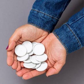 - Quantidade: 12 unidades de Discos Grande e 01 elástico - Tamanho dos discos: 31mm - Capacidade dos discos: até 150 folhas de 90g ou 120 folhas de 120g - Cor: Branco - Material: ABS, pet, celulose e latex - Produto atóxico