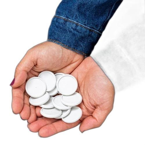- Quantidade: 12 unidades de Discos Grande e 01 elástico - Tamanho dos discos: 31mm - Capacidade dos discos: até 150 folhas de 90g ou 120 folhas de 120g - Cor: Branco - Material: ABS, pet, celulose e latex - Produto atóxico