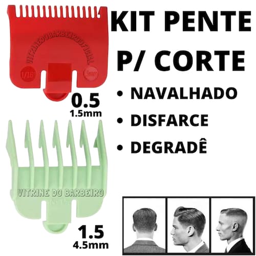 KIT PENTE DE DISFARCE 0,5 E 1,5 PARA MÁQUINAS DE CORTEPentes de excelente qualidade, compatível com todas as Máquinas de Corte:O Pente de Disfarce 0.5 e 1.5mm é especialmente feito para cortes mais precisos de fade o tão famoso degrade.- Faz também as linhas de disfarce mais facilmente.Excelente para quem já possui as máquinas Kemei, e quer melhorar ainda mais a experiência e a qualidade.Conteúdo do pacote:1 x Pente de 0.51 x Pente de 1.5===================================================================Todos nossos produtos com 30 dias de garantia.Todos nossos produtos são a pronta entrega. Após a confirmação do pagamento seu pedido é enviado em até 24h.Temos Satisfação em te Oferecer Produtos de Alta Qualidade!Todas as fotos de nossos produtos são reais.Adicione seus produtos no carrinho e Boas Compras!!!Qualquer dúvida estamos á disposição!Temos Satisfação em Atendê-lo (a).