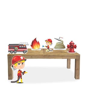 Kit Display Festa Bombeiro Cabelo Loiro 6 Displays - 1 Totem de Chão com 68cm Altura x 51 cm Largura - 5 Display de Mesa com 22cm no seu lado maior Material : Madeira Mdf 3mm com Recorte a Laser - Enviamos para todo Brasil - Impressão com Qualidade e Imagens em alta definição - Acabamento Perfeito : Os display são simplesmente lindos, Segue junto a base de apoio para Que fiquem em pé com facilidade e segurança. Ean: 1001001060573