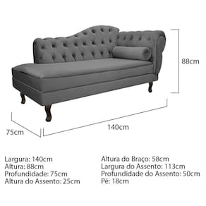 Especificações Técnicas do Kit Recamier Diana 140cm Lado Esquerdo e 02 Poltronas Julia: