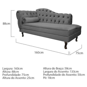 Especificações Técnicas do Kit Recamier Diana 160cm Lado Direito e 02 Poltronas Julia: