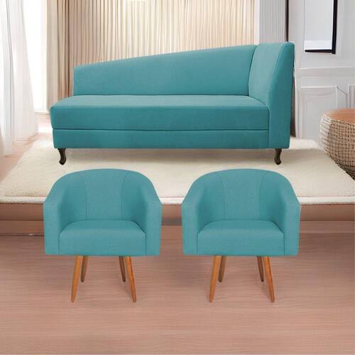 Kit Diva Recamier Heitor 160cm Lado Esquerdo E 02 Poltronas Luiza Suede - Doce Sonho Móveis Cor Azul Turquesa