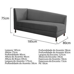 Especificações Técnicas do Kit Recamier Heitor 185cm Lado Direito e 02 Poltronas Luiza: