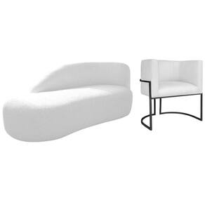 Kit Divã Luna 140cm Lado Esquerdo E 01 Poltrona Base De Ferro Preto Suede Cor Branco