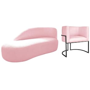 Kit Divã Luna 140cm Lado Esquerdo E 01 Poltrona Base De Ferro Preto Suede Cor Rosa Bebê